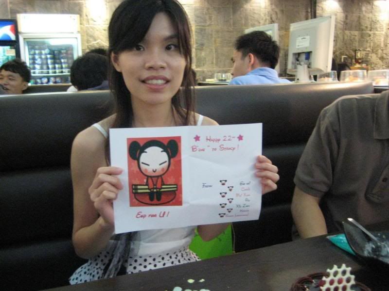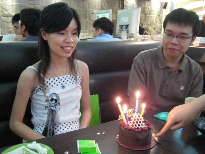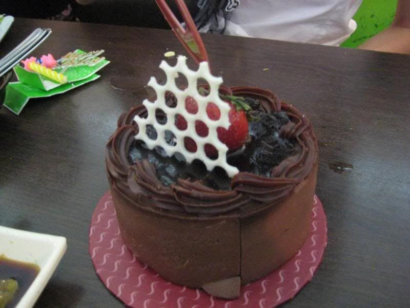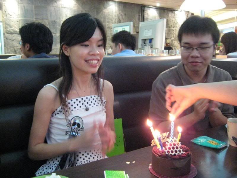 it was kinda dumb la. cus everyone was looking at me since i was talking and when the waitress approached us with the cake, i started to sing happy bday and clap but everyone else "err".